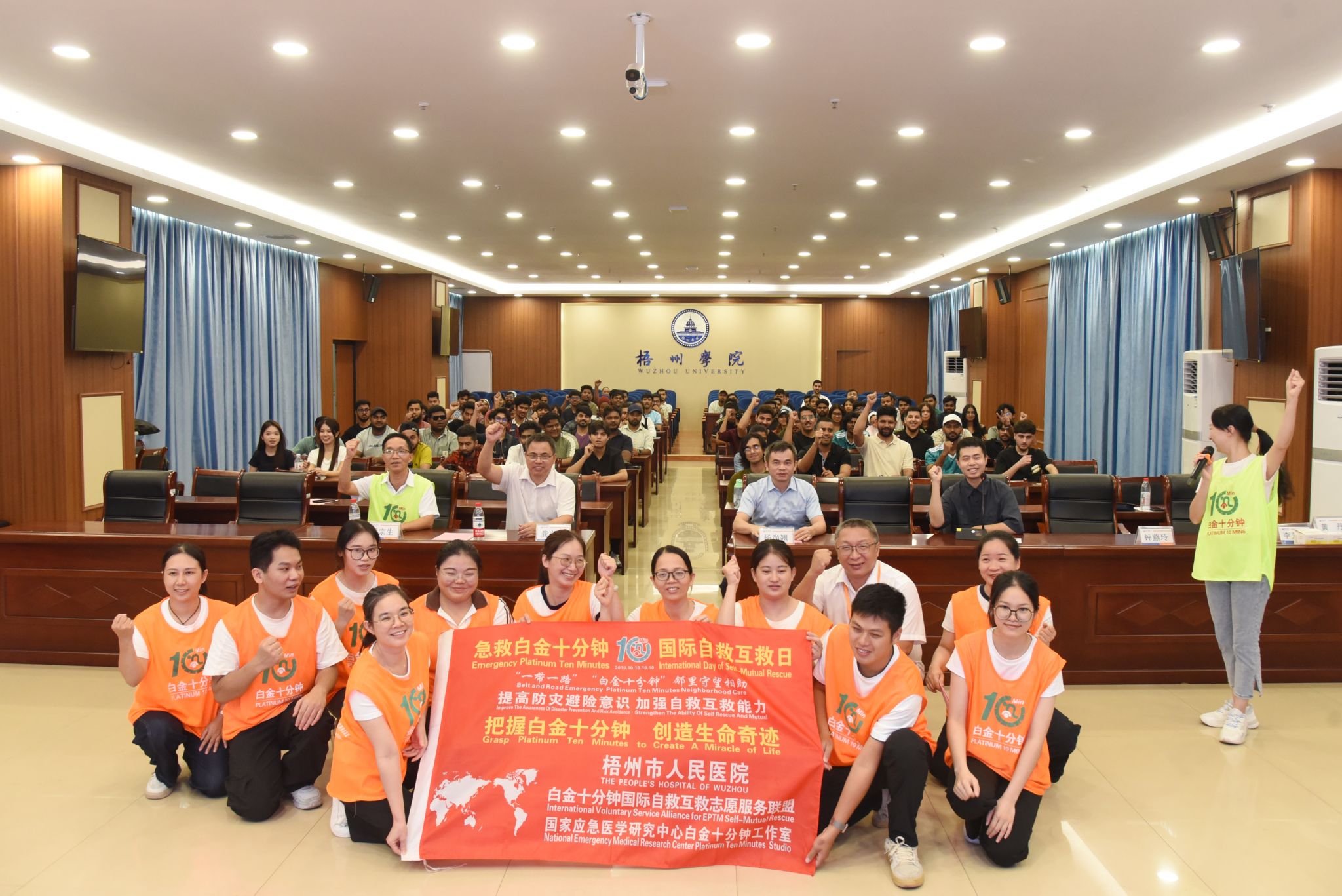 10月9日上午,国际教育学院邀请梧州市人民医院在明科楼报告厅开展“急救白金十分钟 全国自救互救日”急救知识科普及技能培训活动。来自孟加拉国、巴基斯坦等8个国家的100余名留学生及我校老师参与活动。培训采用"理论+实操"模式,重点讲解心肺复苏术、AED使用、海姆立克急救法及创伤包扎等急救技能。参训师生通过情景模拟、手把手教学等方式,掌握"白金十分钟"急救要领。留学生们认为此次培训非常必要且有意义。越南留学生阮玉芝表示:...