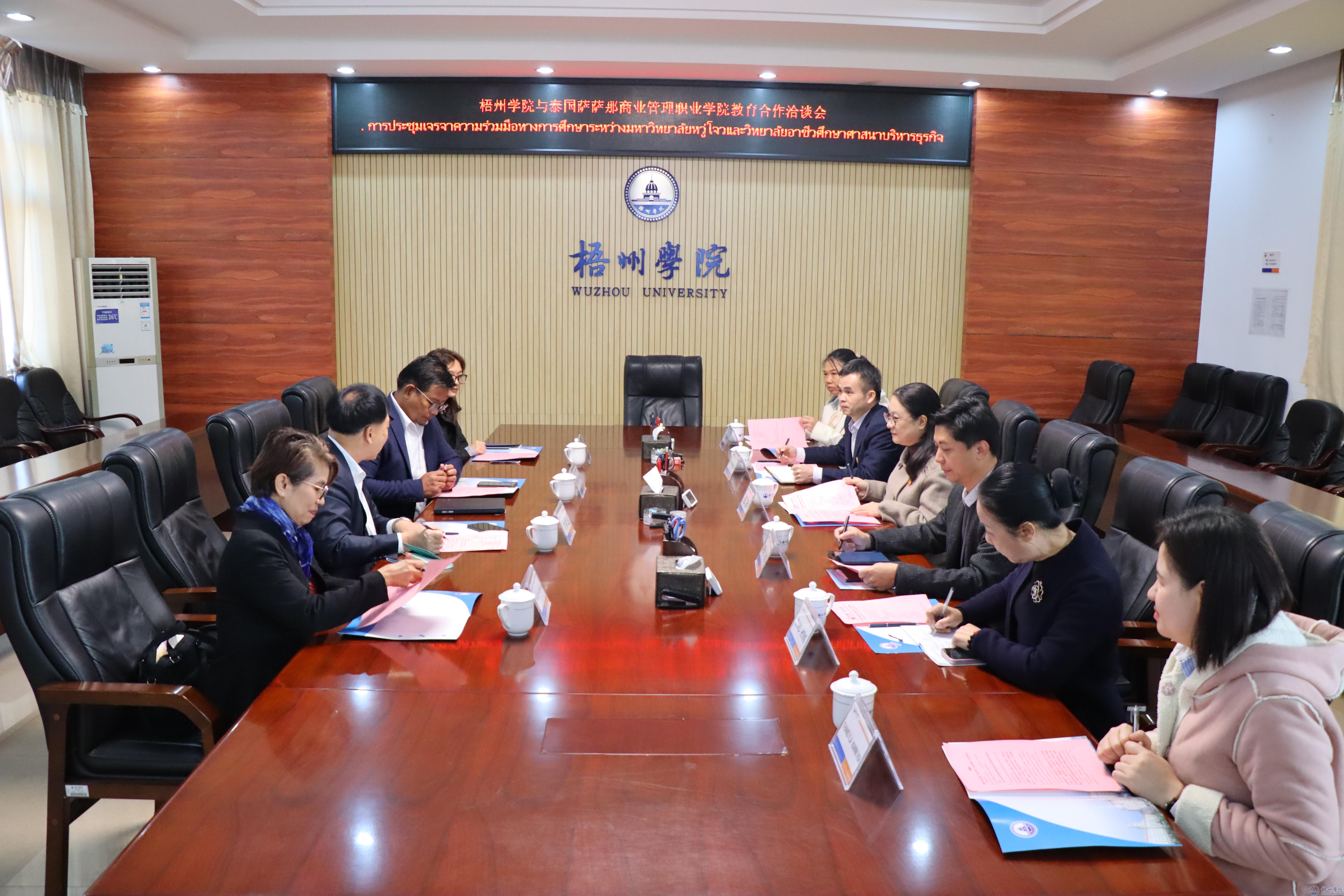 1月2日上午,泰国萨萨那商业管理职业学院刘容达教授一行四人到访我校,受到杨奔校长的热情接待。座谈会上,国际教育学院院长、国际交流处处长何恩回顾了我校与泰国高校开展国际交流与合作的情况。管理学院副院长赵虹介绍管理学院概况,表达了与萨萨那商业管理职业学院达成务实合作的希望。刘容达教授介绍了此次来访我校的目的。他表示,泰国旅游、食品以及橡胶产业人才需求较大,人工智能、新能源汽车等行业是学生的热门选择,有鉴于此,...