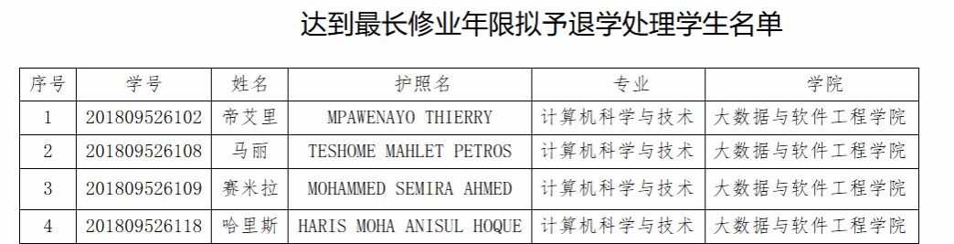 附件:达到最长修业年限拟予以退学处理学生名单